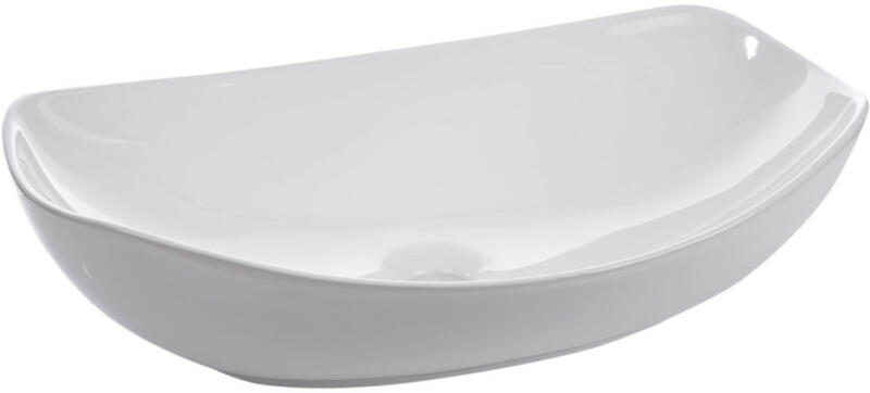 A csap lyuk nélküli KR-901 design mosdó 56,5 x 40,5 x 15 cm-es fehér színű szaniter kerámiából készült és pultra helyezhető.