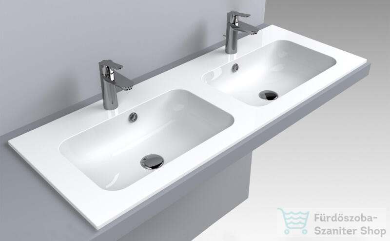 LunArt Gabriel 1200-2 120, 1x45 cm-es 2 medencés beépíthető öntöttmárvány mosdó, fényes fehér 5999123002198 (5999123002198)